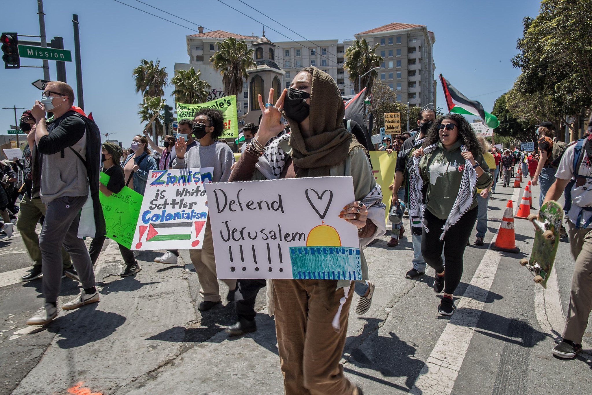 Local demonstrators said on Saturday that they felt a surge of multiracial and multi-ethnic support for the Palestinian cause, as they marched down Van Ness Avenue alongside Black and Jewish allies.